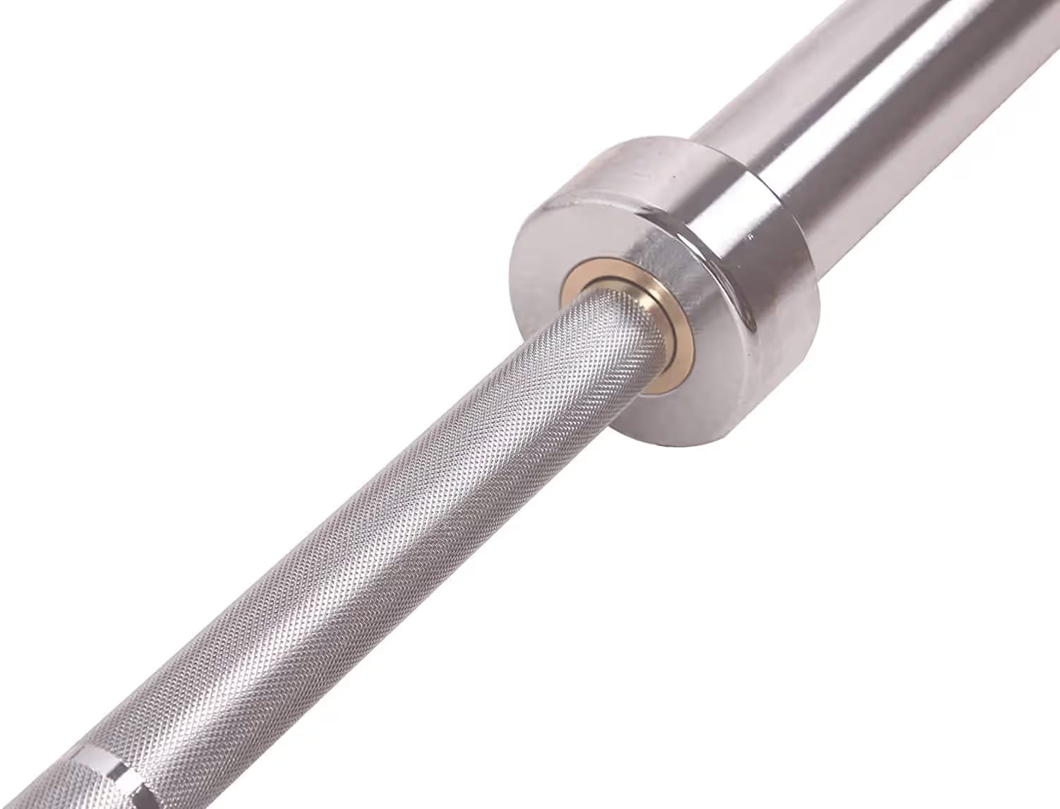 Standard hard chrome 7-foot bar designed with medium depth diamond knurled surface and sleeves on extremely smooth bearing.