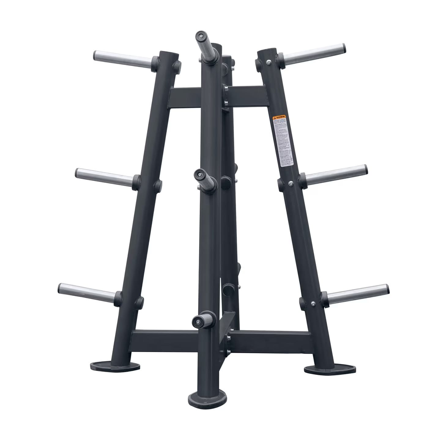 The CF2134 Weight Plate Tree tree has 12 plate pegs that hold up to 10 plates on each peg. The rack is commercial grade with a sleek futuristic design and can hold over 1000 lbs