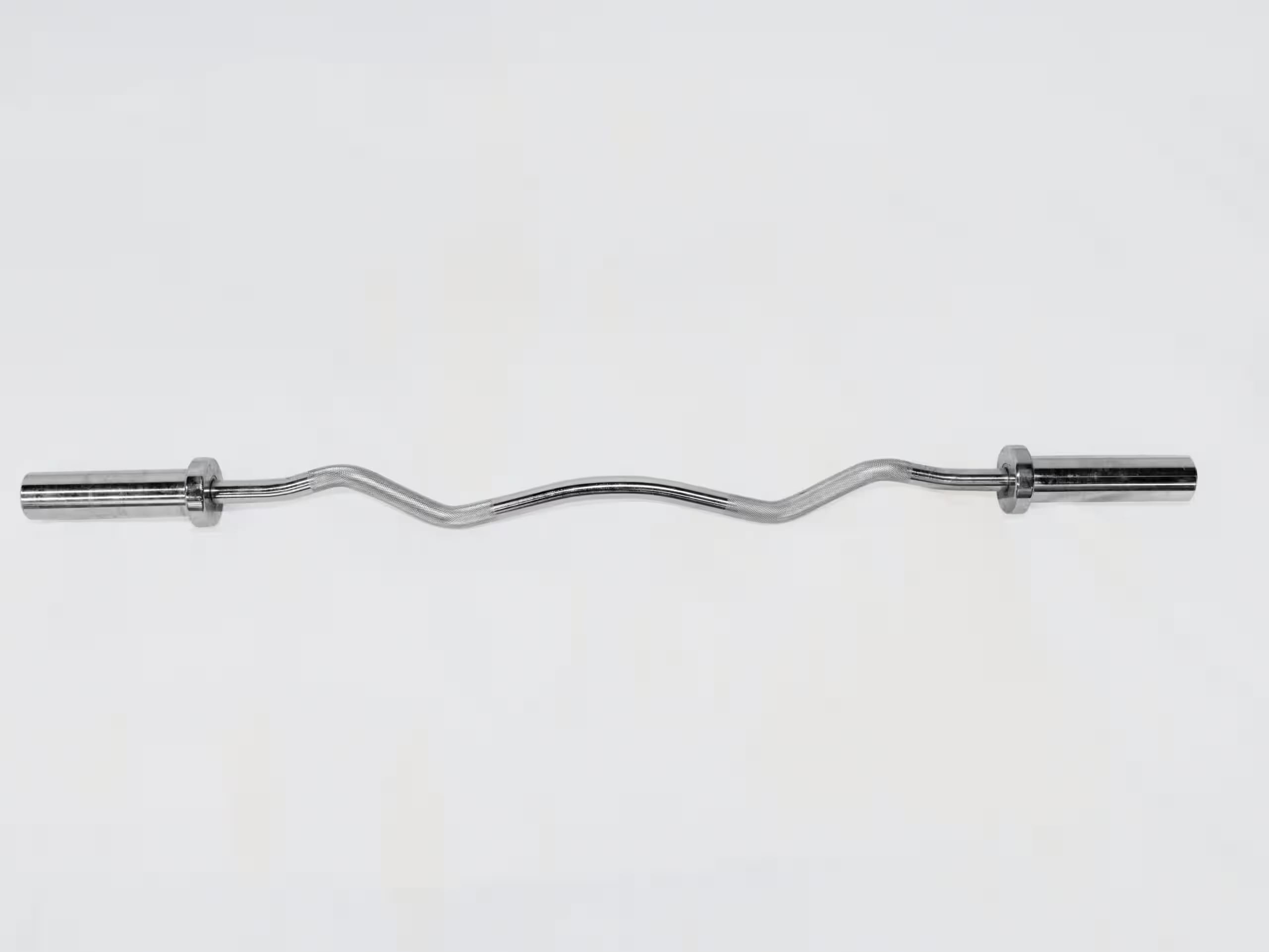 The EZ Curl Bar measures 47″ and can be loaded with Olympic Plates.