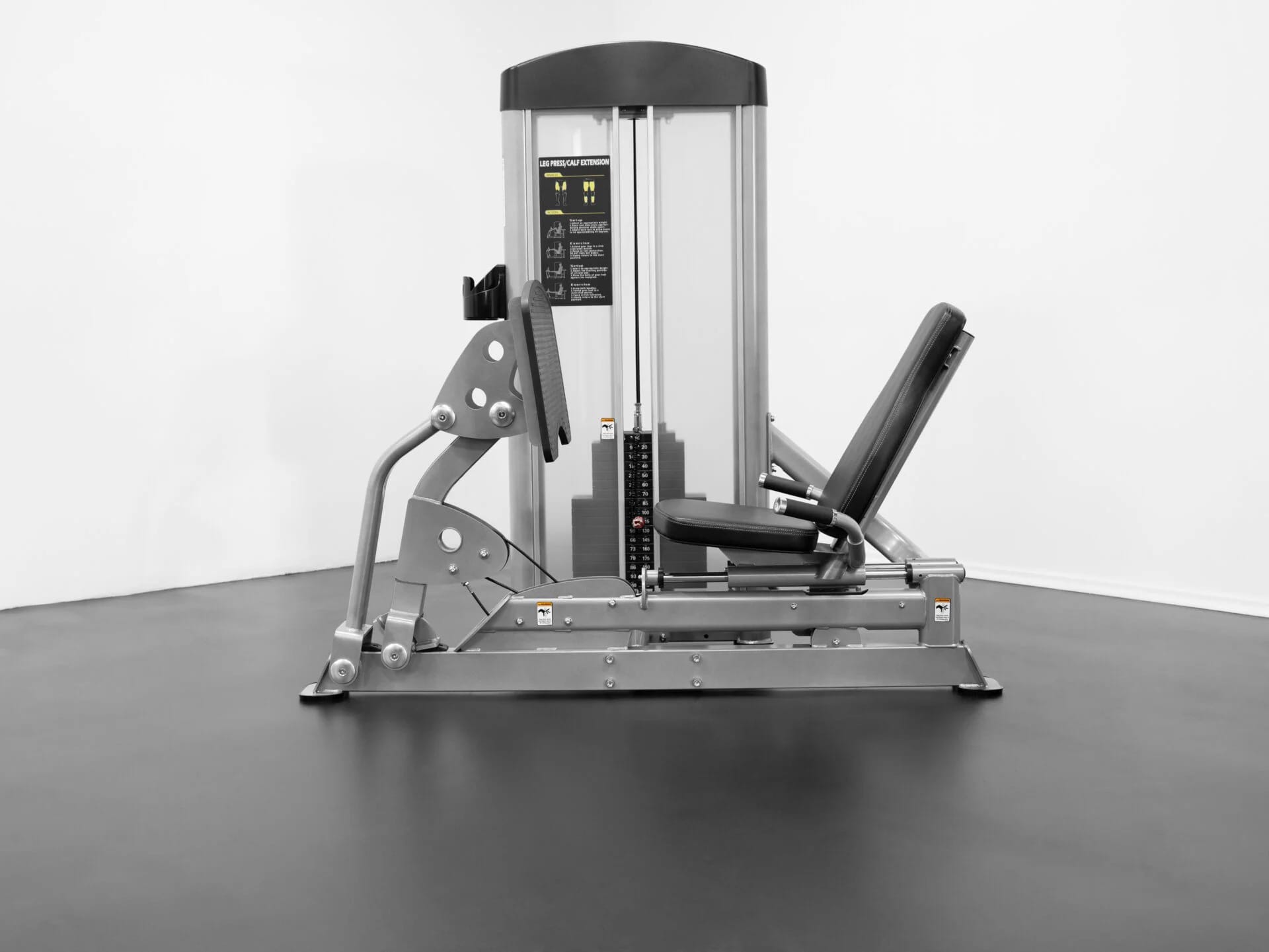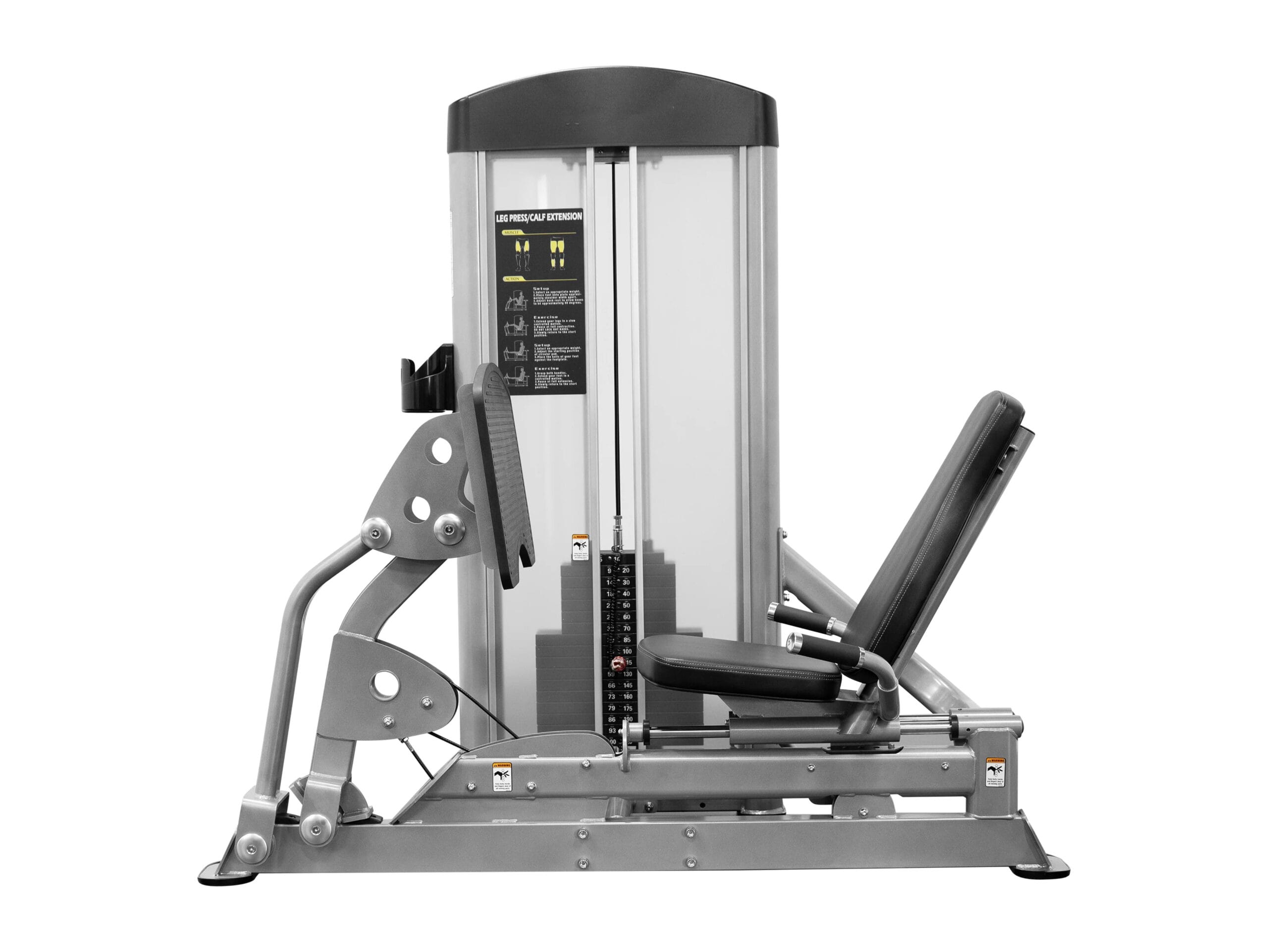 Rig.Asia Isolation Series Leg Press/Calf Extension is a selectorized leg press machine. The horizontal seated leg press is built with a hinged press plate that allows leg pressing and calf extensions done in the one motion. The machine is equipped with a 220lb weight stack. This machine is commercial grade and rated to hold over 1000lbs.