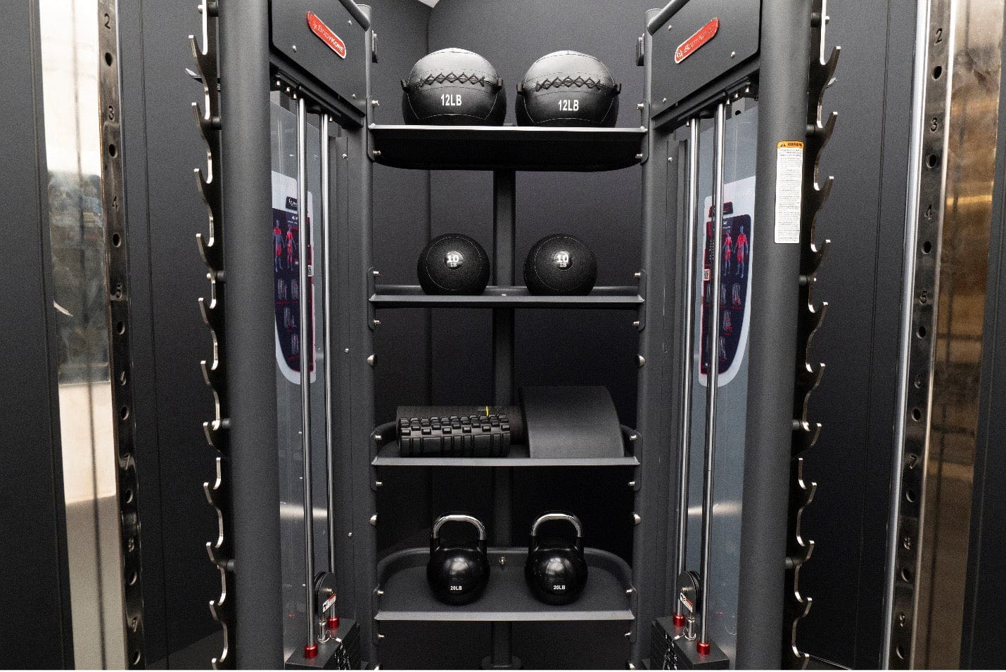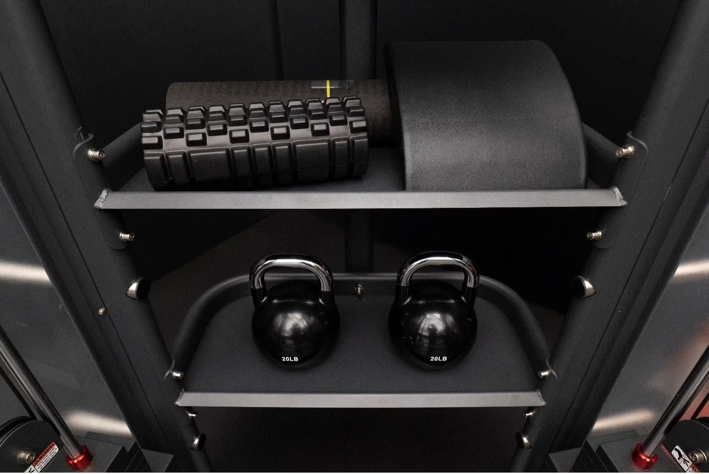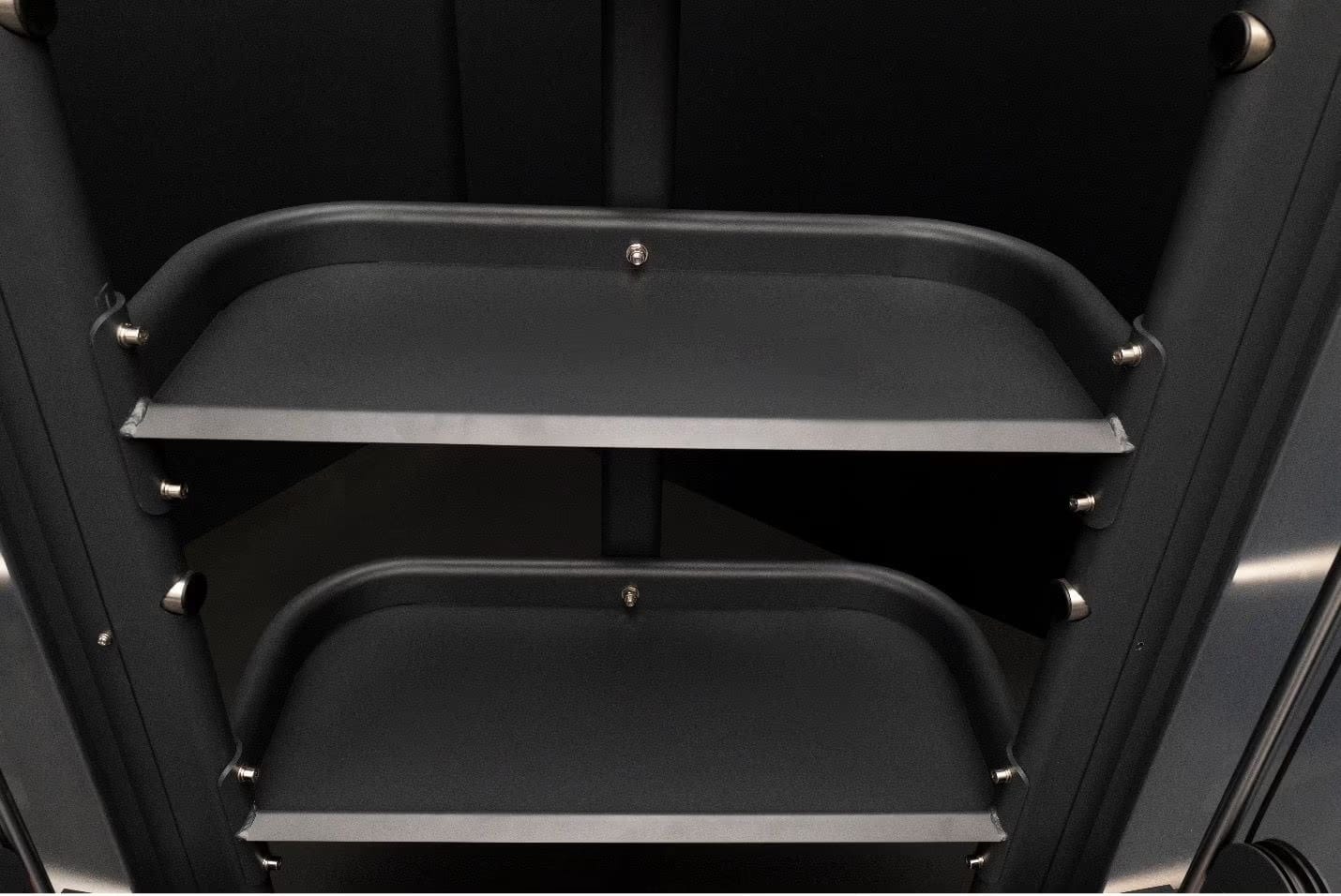 The Universal Accessory Rack is the ultimate storage solution to pair with your Universal Trainer. The heavy duty storage rack comes with 4 spacious shelves that can hold over 250lbs on each shelf. The shelves can be used for kettlebells, medicine balls, foam rollers, cable attachments and plenty of other things you can use for training with the Universal Trainer.